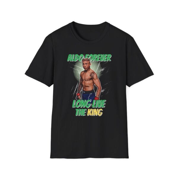 Legends fade, kings remain. This powerful design captures Aldo standing proud with crown in place — a tribute to timeless greatness. For true fans of MMA’s featherweight king. Explore more in our mma collection.
