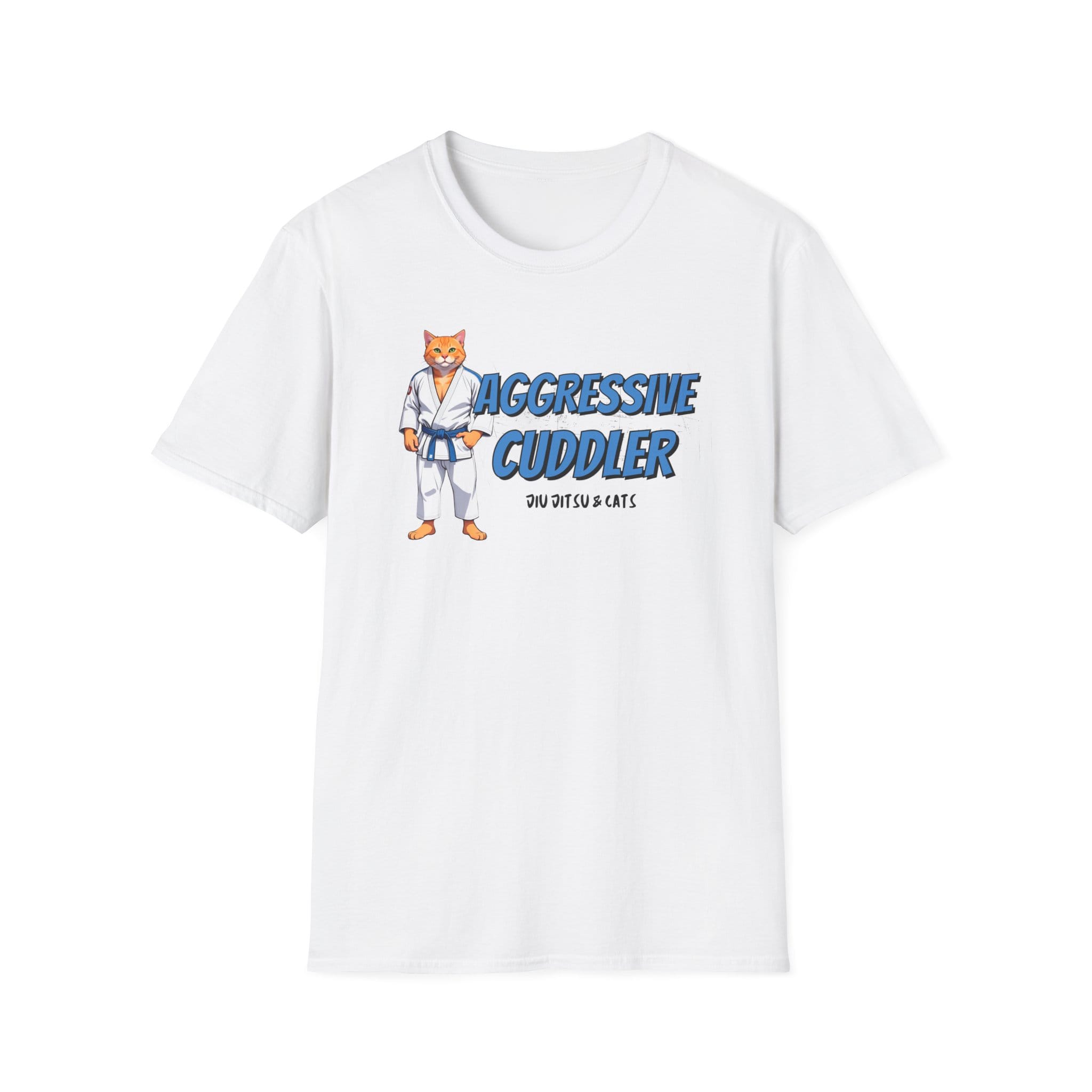A deceptively cute cat in a gi surprises with an aggressive hug—locking in a fierce hold on its opponent. The Aggressive Cuddler Tee captures that perfect balance of cuteness and combat. Ideal for jiujitsu fans who know that love and pressure go hand in hand.