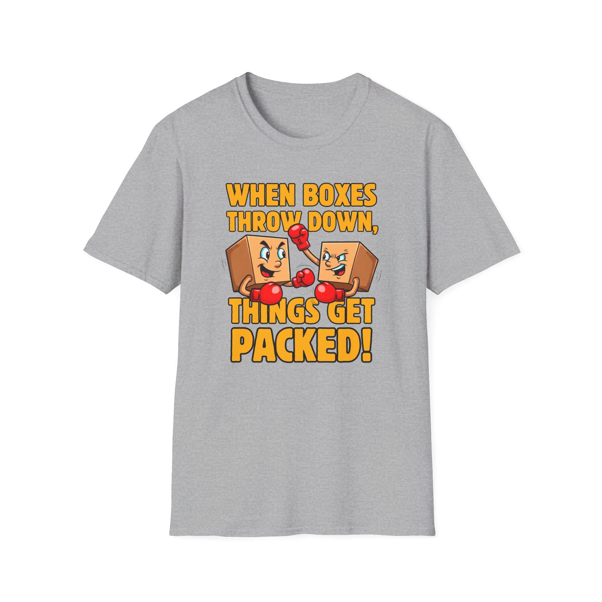 Two cardboard boxes with gloves on, battling it out in pure pugilist parody. Explore more from our Boxing and Funny collections.