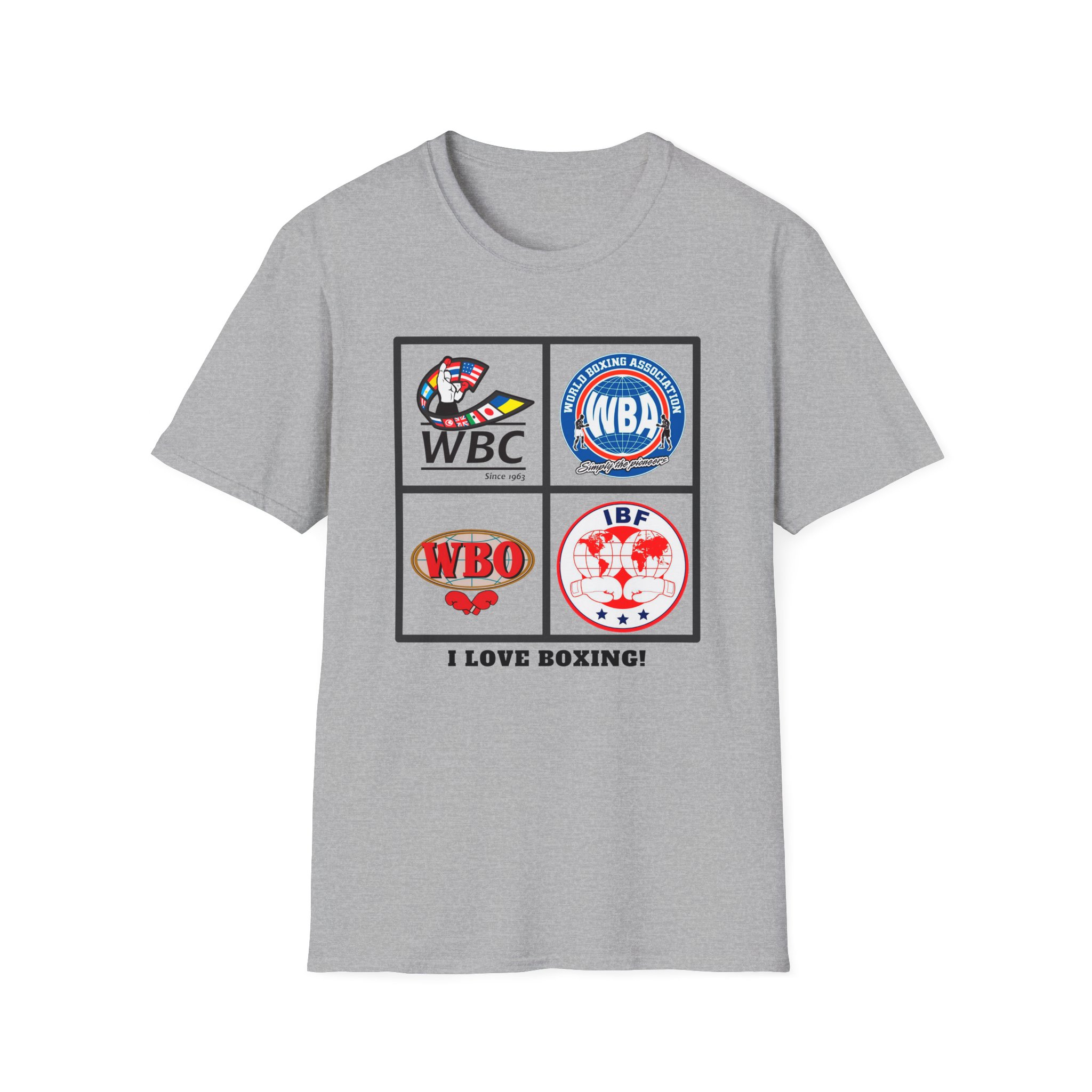 The four major boxing organizations, WBC, WBA, WBO & IBF. Great Gift for any Boxing and/or Combat sports fan. I Love Boxing Tee. Thank you for shopping at Combat Zone Store!