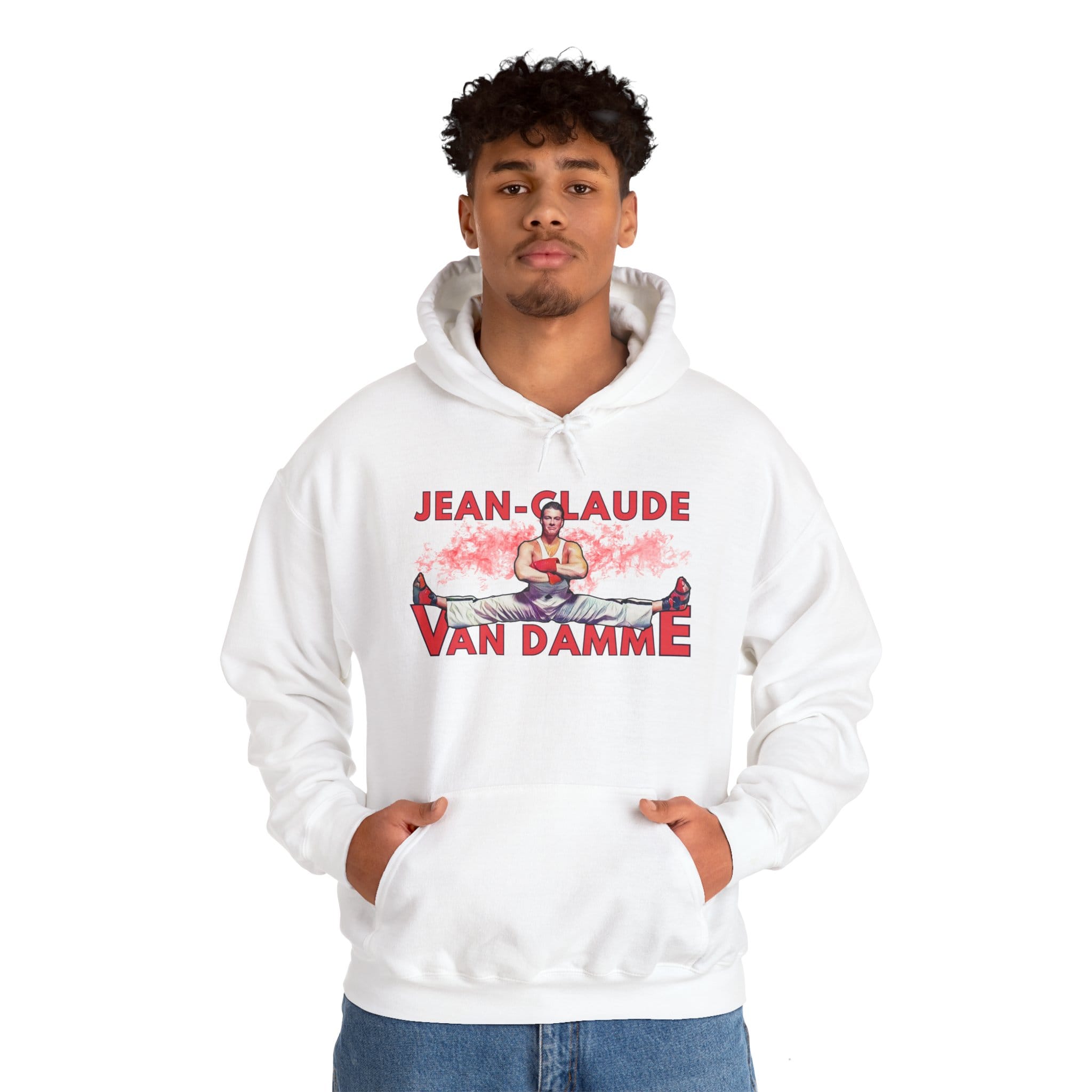 Relive the 1986 classic film with the Iconic Van Damme Split Hoodie from No Retreat, No Surrender. Iconic Jean-Claude Van Damme Split Hoodie, this iconic pose of Van Damme in a split brings back memories of classic martial arts action. Explore more in the MMA collection and Fight Movies collection.