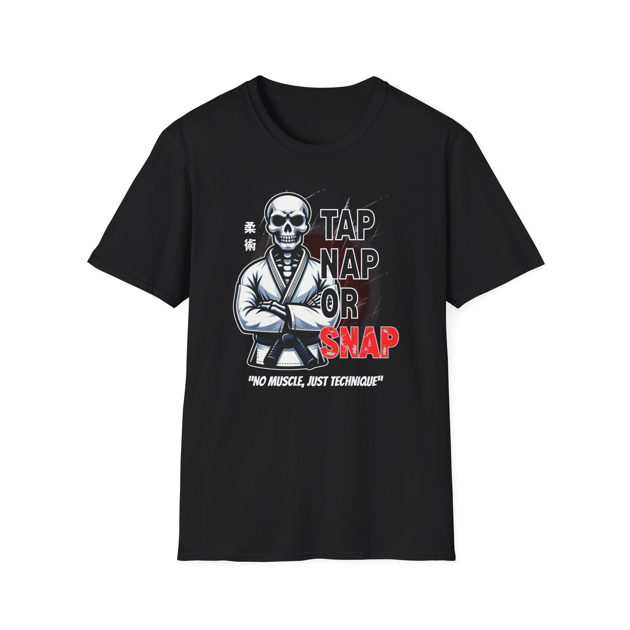 Muscle fades, but clean technique never dies. This skeletal fighter shows what matters most in the world of jiujitsu — brains over brawn. Whether you’re a tactician or just tired of being out-muscled, this tee sends the right message. Embrace the art, not just the grind, and keep your skills sharp for life.