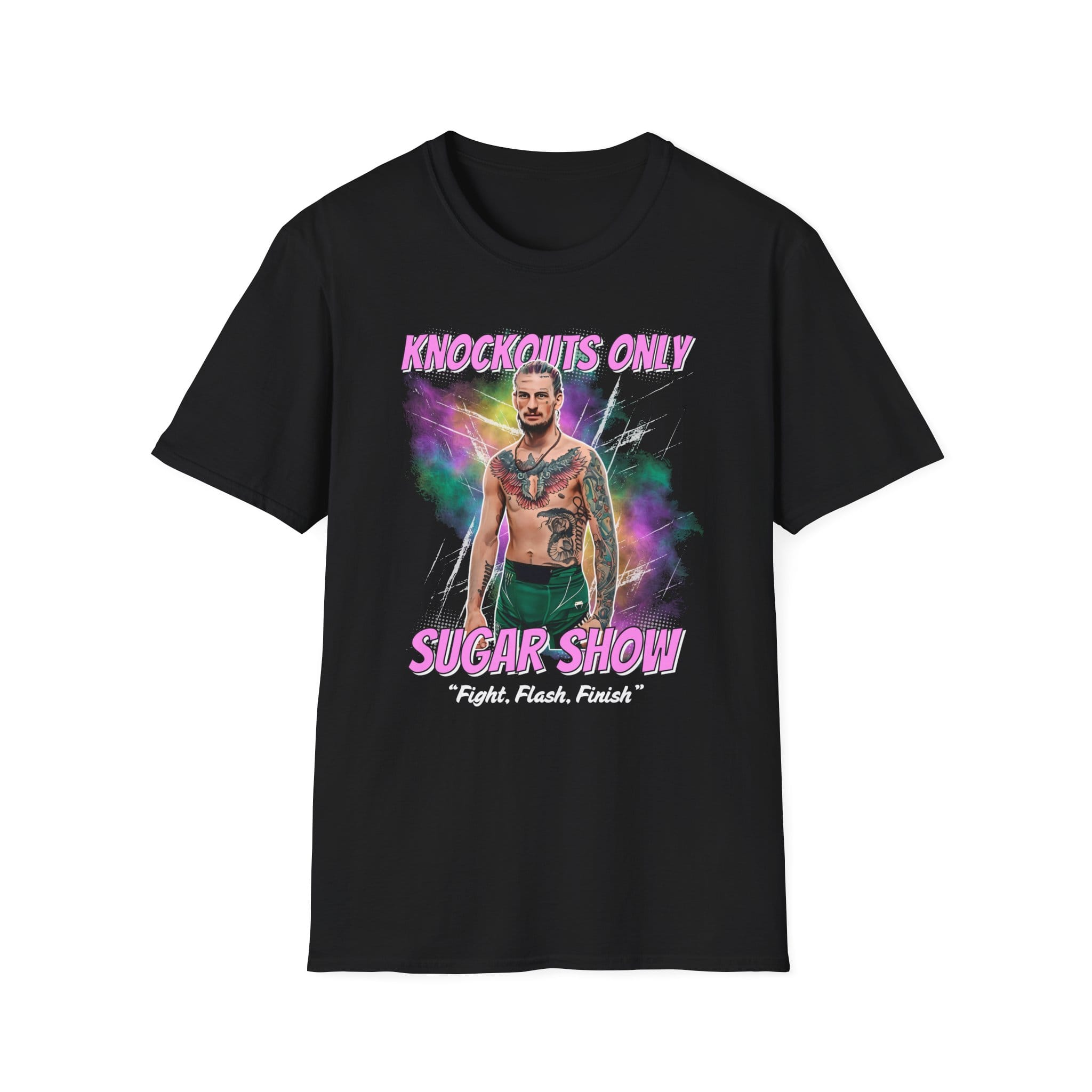 Step into the spotlight with the Sugar Show Knockouts Only Tee, capturing Sean O’Malley’s electric fight aura. Flashy, fierce, and made for finishers — this one’s for fans who love the KO. Explore more from our MMA collection.