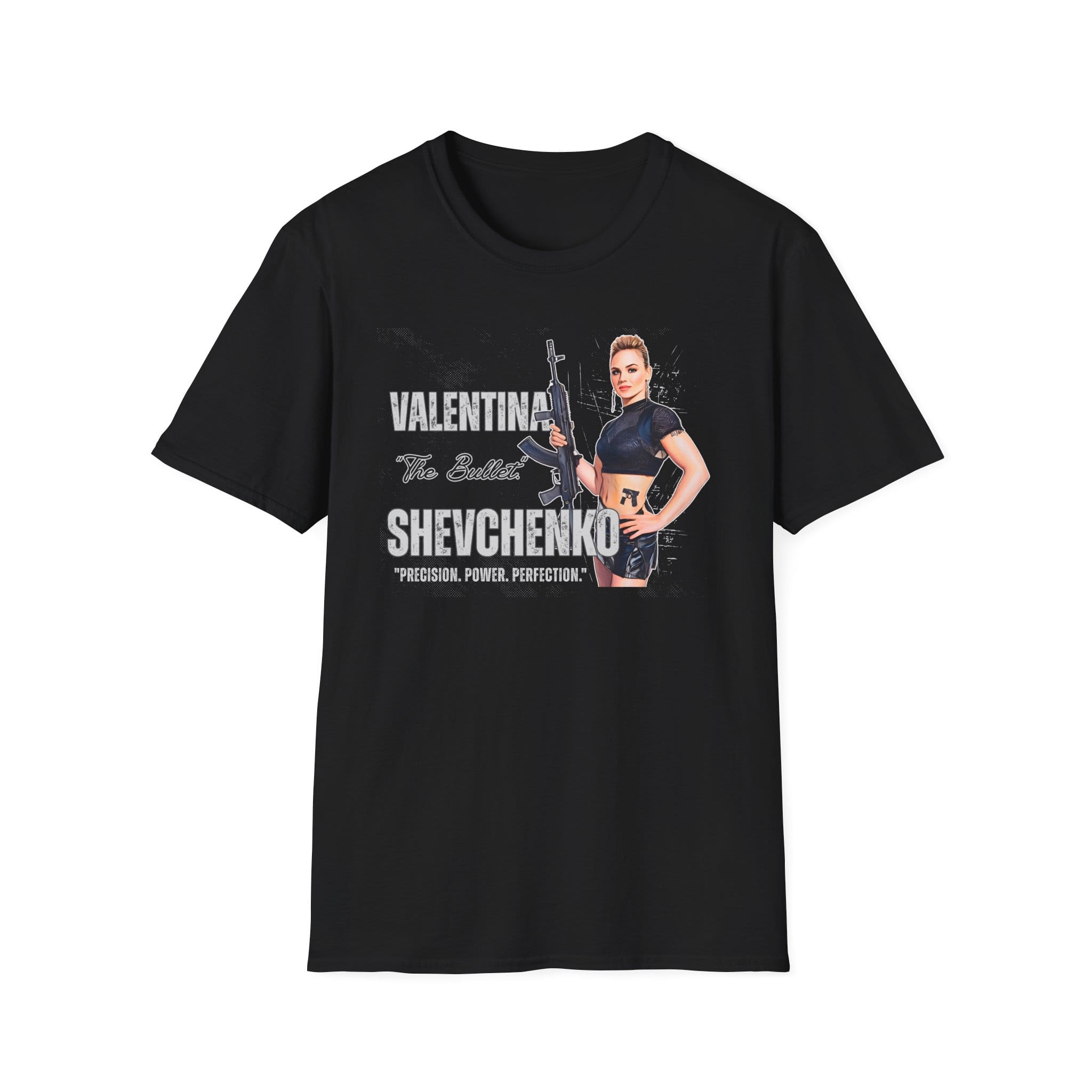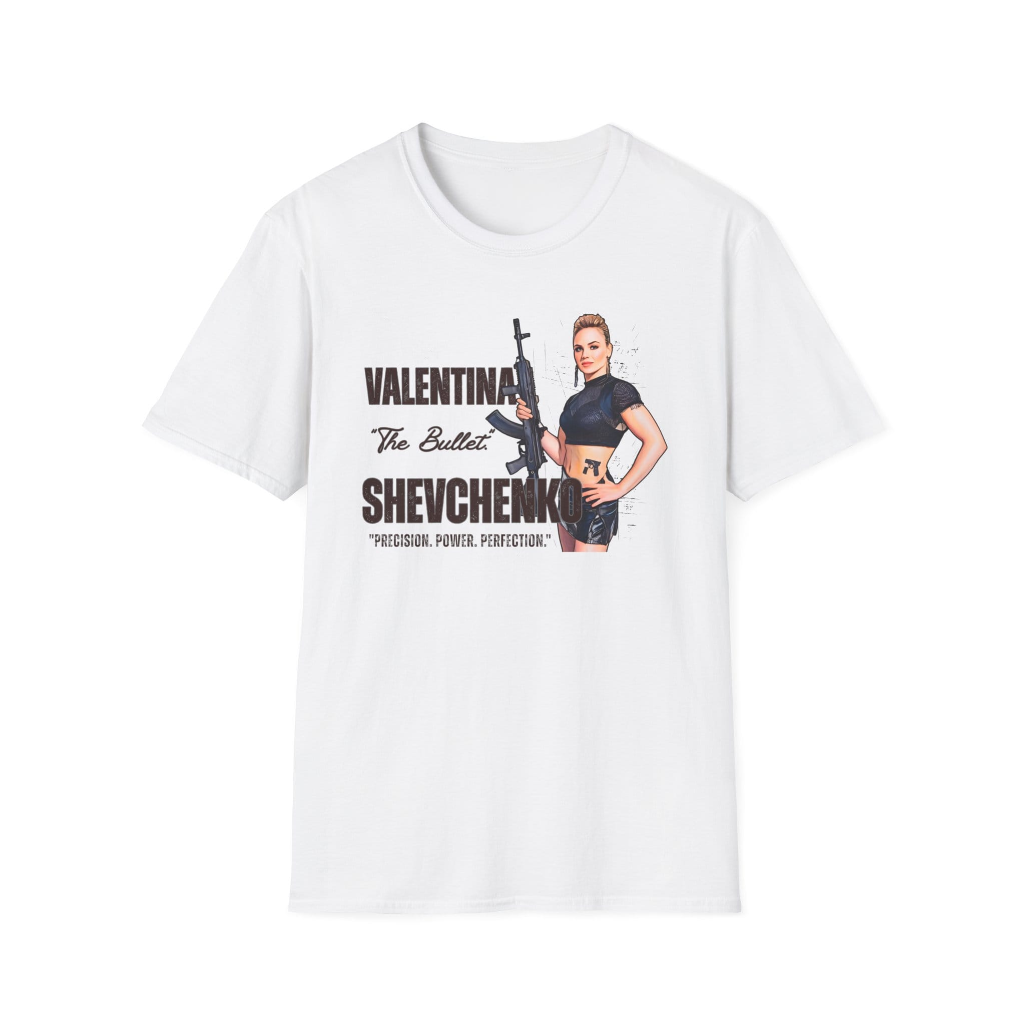 Locked, loaded, and legendary—the Bullet Shevchenko Machine Gun Tee shows Valentina ready for war, MMA belt or not. Ruthless elegance shines in the Bullet Shevchenko Machine Gun Tee. Explore more in the MMA collection and Fight Movies collection.